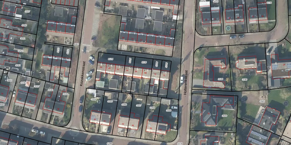 Kozakkenstraat 68 is gelegen op kadastraal perceel HTN03F6126. Deze kadastrale aanduiding is uniek en wordt gebruikt door het Kadaster om eigendomsrechten en andere zakelijke rechten vast te leggen. Het perceel maakt onderdeel uit van de kadastrale gemeente Holten.