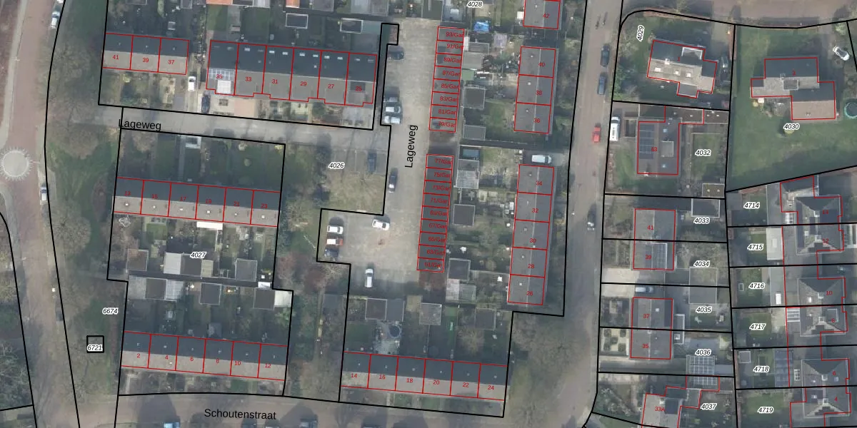 Het perceel waarop Lageweg 69-Gar staat heeft een oppervlakte van 8980 m². Dit is een zeer groot perceel. De perceeloppervlakte wordt geregistreerd door het Kadaster. Gedetailleerde informatie over de maten van dit perceel kunt u vinden in het rapport Kadastrale kaart met maatvoering van Lageweg 69-Gar.