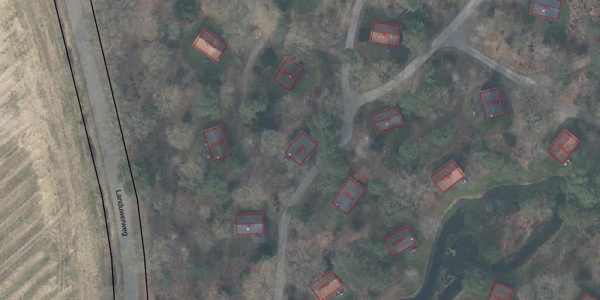 Het perceel waarop Landuwerweg 17-026 staat heeft een oppervlakte van 17,6 ha. Dit is een zeer groot perceel. De perceeloppervlakte wordt geregistreerd door het Kadaster. Gedetailleerde informatie over de maten van dit perceel kunt u vinden in het rapport Kadastrale kaart met maatvoering van Landuwerweg 17-026.