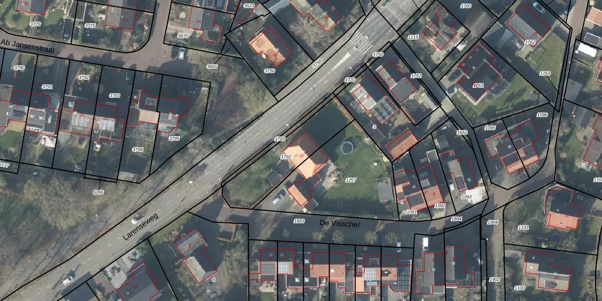 Larenseweg 72 is gelegen op kadastraal perceel HTN03I1792. Deze kadastrale aanduiding is uniek en wordt gebruikt door het Kadaster om eigendomsrechten en andere zakelijke rechten vast te leggen. Het perceel maakt onderdeel uit van de kadastrale gemeente Holten.