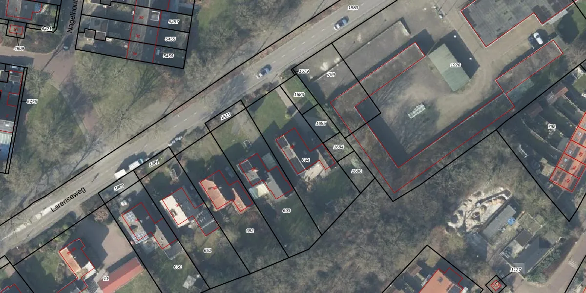 Het perceel waarop Larenseweg 86 staat heeft een oppervlakte van 793 m². Dit is een groot perceel. De perceeloppervlakte wordt geregistreerd door het Kadaster. Gedetailleerde informatie over de maten van dit perceel kunt u vinden in het rapport Kadastrale kaart met maatvoering van Larenseweg 86.