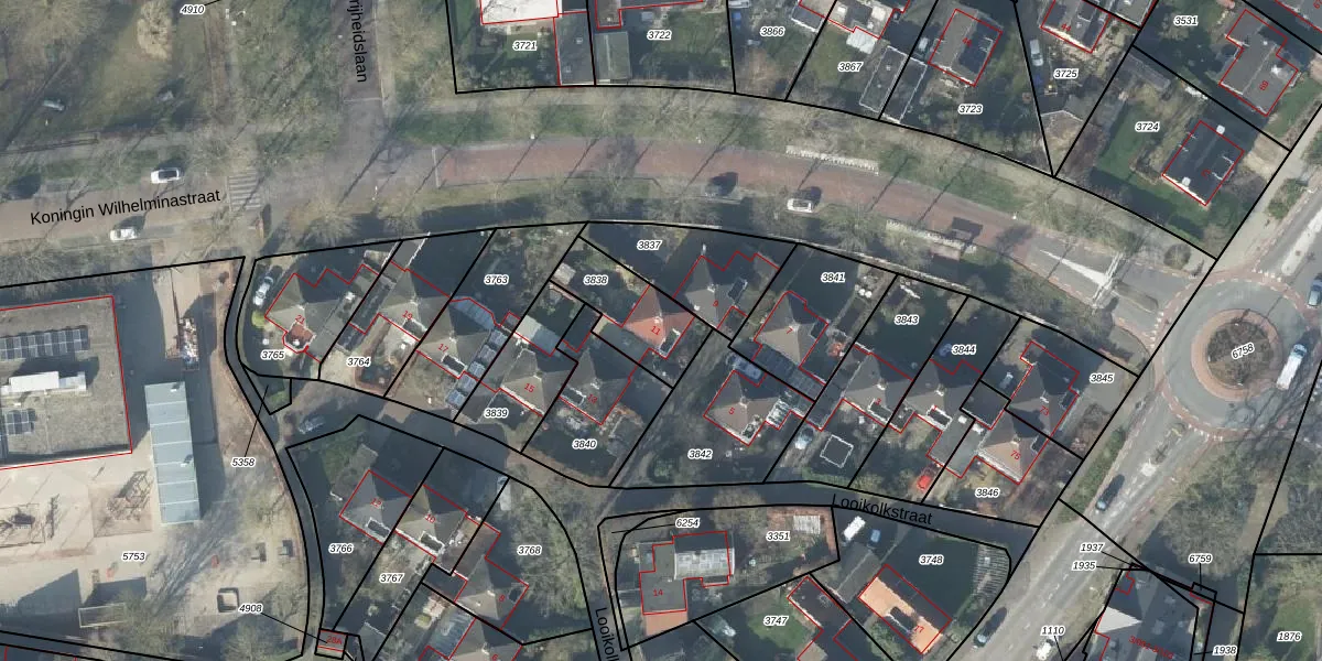 Gebruik de zoekbalk of klik op een perceel voor informatie over de adressen binnen dit perceel.
