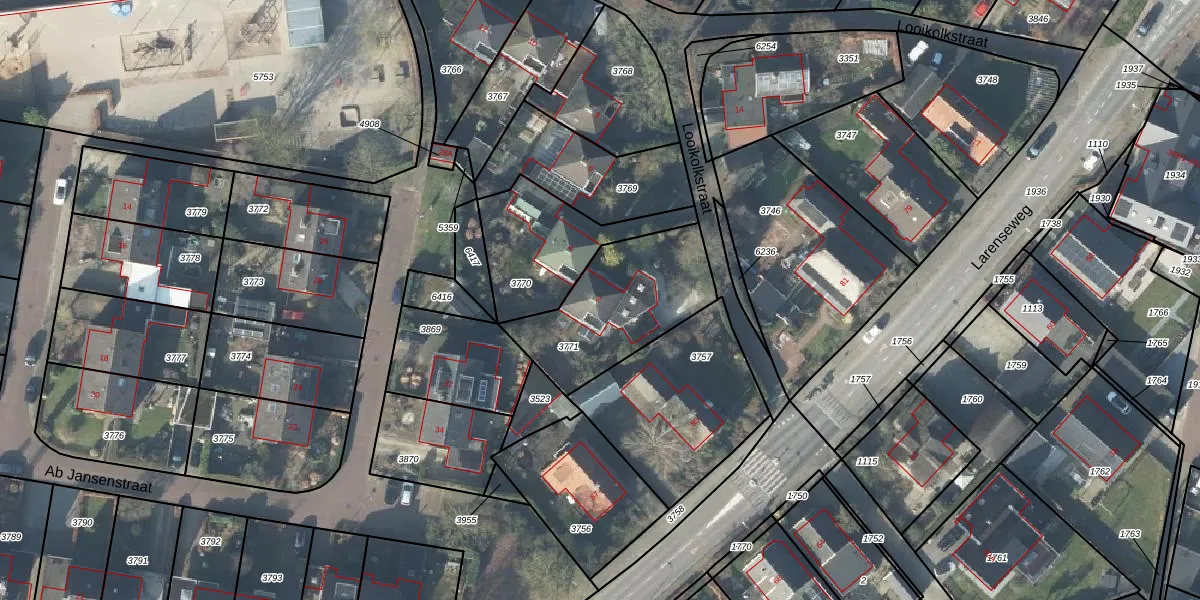 Het perceel waarop Looikolkstraat 2 staat heeft een oppervlakte van 520 m². Dit is een groot perceel. De perceeloppervlakte wordt geregistreerd door het Kadaster. Gedetailleerde informatie over de maten van dit perceel kunt u vinden in het rapport Kadastrale kaart met maatvoering van Looikolkstraat 2.
