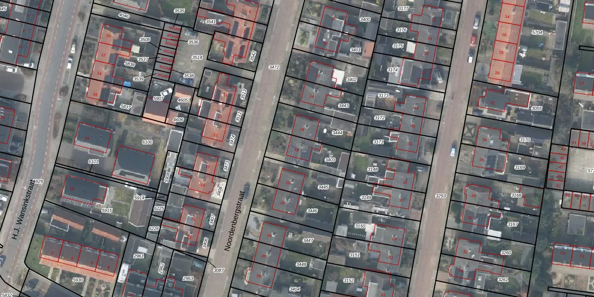 Gebruik de zoekbalk of klik op een perceel voor informatie over de adressen binnen dit perceel.
