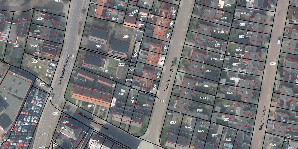 Gebruik de zoekbalk of klik op een perceel voor informatie over de adressen binnen dit perceel.