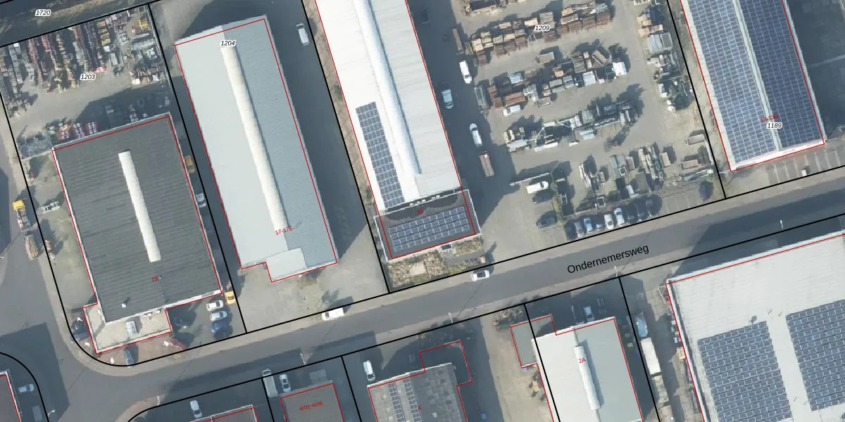 Het perceel waarop Ondernemersweg 15 staat heeft een oppervlakte van 6982 m². Dit is een zeer groot perceel. De perceeloppervlakte wordt geregistreerd door het Kadaster. Gedetailleerde informatie over de maten van dit perceel kunt u vinden in het rapport Kadastrale kaart met maatvoering van Ondernemersweg 15.