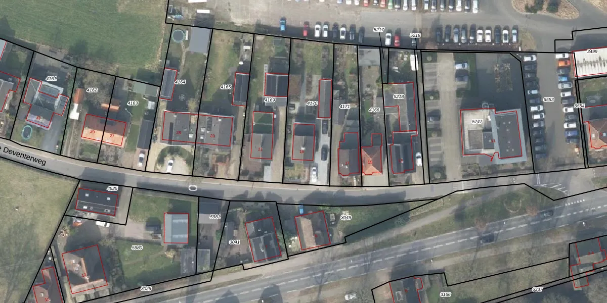 Het adres ligt op het perceel HTN03-F-4170, dat zich in de kadastrale gemeente Holten bevindt. Het perceel is 700 m² groot. Dat is kleiner dan de gemiddelde perceeloppervlakte in Holten, dat op 7850,59 m² ligt. De grootste perceeloppervlakte in de kadastrale gemeente is 62,1 ha. De kleinste oppervlakte bedraagt 0 m². Op het perceel bevinden zich geen andere adressen. De laatste wijziging in het de Basisregistratie Kadaster (BRK) was op 03-04-2001.