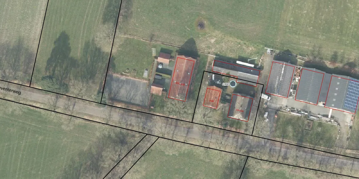 Het perceel waarop Oude Deventerweg 43-C staat heeft een oppervlakte van 6,2 ha. Dit is een zeer groot perceel. De perceeloppervlakte wordt geregistreerd door het Kadaster. Gedetailleerde informatie over de maten van dit perceel kunt u vinden in het rapport Kadastrale kaart met maatvoering van Oude Deventerweg 43-C.