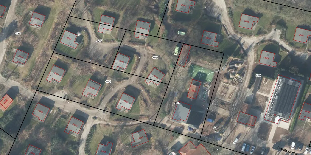 Pannenweg 20-46 is gelegen op kadastraal perceel HTN03B4103. Deze kadastrale aanduiding is uniek en wordt gebruikt door het Kadaster om eigendomsrechten en andere zakelijke rechten vast te leggen. Het perceel maakt onderdeel uit van de kadastrale gemeente Holten.
