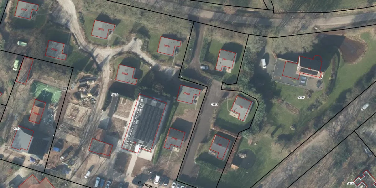 Het perceel waarop Pannenweg 20-58 staat heeft een oppervlakte van 8710 m². Dit is een zeer groot perceel. De perceeloppervlakte wordt geregistreerd door het Kadaster. Gedetailleerde informatie over de maten van dit perceel kunt u vinden in het rapport Kadastrale kaart met maatvoering van Pannenweg 20-58.