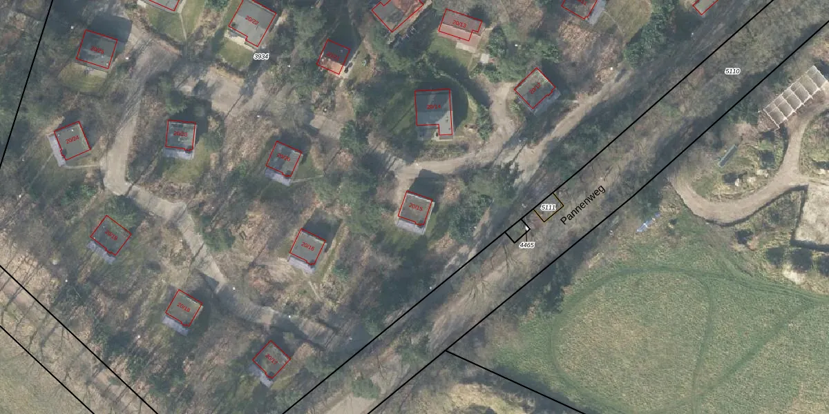 Het perceel waarop Pannenweg 20-15 staat heeft een oppervlakte van 2,0 ha. Dit is een zeer groot perceel. De perceeloppervlakte wordt geregistreerd door het Kadaster. Gedetailleerde informatie over de maten van dit perceel kunt u vinden in het rapport Kadastrale kaart met maatvoering van Pannenweg 20-15.
