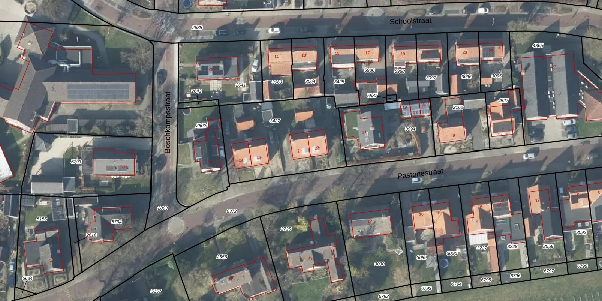 Het perceel waarop Pastoriestraat 25 staat heeft een oppervlakte van 951 m². Dit is een groot perceel. De perceeloppervlakte wordt geregistreerd door het Kadaster. Gedetailleerde informatie over de maten van dit perceel kunt u vinden in het rapport Kadastrale kaart met maatvoering van Pastoriestraat 25.