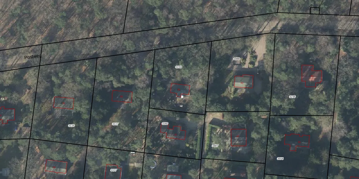 Het perceel waarop Postweg 30 staat heeft een oppervlakte van 1157 m². Dit is een zeer groot perceel. De perceeloppervlakte wordt geregistreerd door het Kadaster. Gedetailleerde informatie over de maten van dit perceel kunt u vinden in het rapport Kadastrale kaart met maatvoering van Postweg 30.