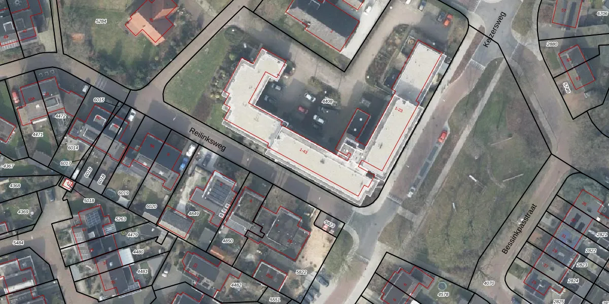 Het perceel waarop Reilinksweg 23 staat heeft een oppervlakte van 3795 m². Dit is een zeer groot perceel. De perceeloppervlakte wordt geregistreerd door het Kadaster. Gedetailleerde informatie over de maten van dit perceel kunt u vinden in het rapport Kadastrale kaart met maatvoering van Reilinksweg 23.
