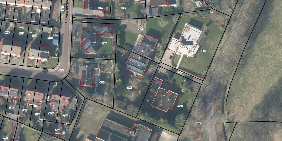 Het perceel waarop het adres ligt is HTN03-F-3582. De afkorting 'HTN03' staat voor kadastrale gemeente Holten. De gemiddelde perceelgrootte in Holten is 7850,59 m². Dit perceel is kleiner: de perceeloppervlakte bedraagt 1035 m². Het kleinste perceel in de kadastrale gemeente is 0 m² groot. De grootste perceeloppervlakte is 62,1 ha. Dit is het enige adres dat aanwezig is op het perceel. In de Basisregistratie Kadaster (BRK) werden de grenzen van het perceel geregistreerd op 15-03-2001.