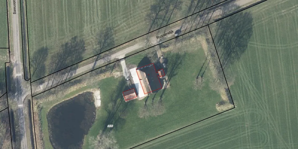 Het perceel waarop Russendijk 6 staat heeft een oppervlakte van 7750 m². Dit is een zeer groot perceel. De perceeloppervlakte wordt geregistreerd door het Kadaster. Gedetailleerde informatie over de maten van dit perceel kunt u vinden in het rapport Kadastrale kaart met maatvoering van Russendijk 6.