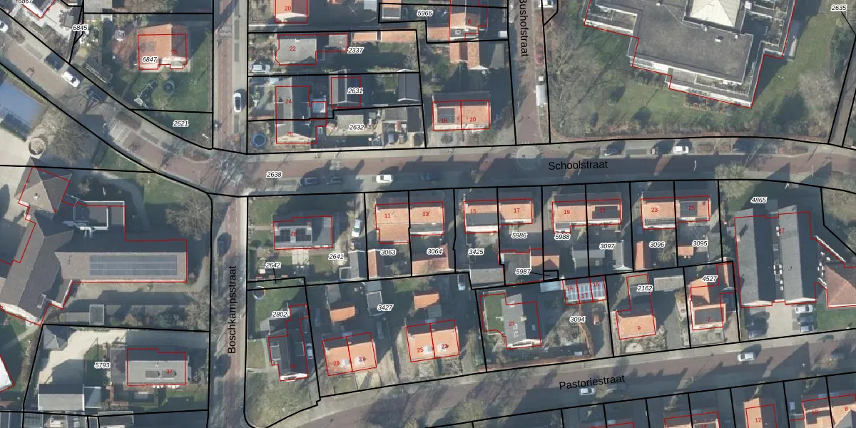 Het perceel waarop Schoolstraat 13 staat heeft een oppervlakte van 212 m². Dit is een middelgroot perceel. De perceeloppervlakte wordt geregistreerd door het Kadaster. Gedetailleerde informatie over de maten van dit perceel kunt u vinden in het rapport Kadastrale kaart met maatvoering van Schoolstraat 13.