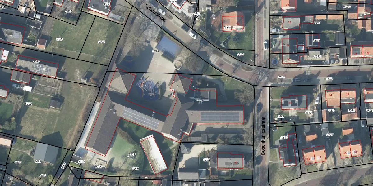 Het perceel waarop Schoolstraat 9 staat heeft een oppervlakte van 4190 m². Dit is een zeer groot perceel. De perceeloppervlakte wordt geregistreerd door het Kadaster. Gedetailleerde informatie over de maten van dit perceel kunt u vinden in het rapport Kadastrale kaart met maatvoering van Schoolstraat 9.