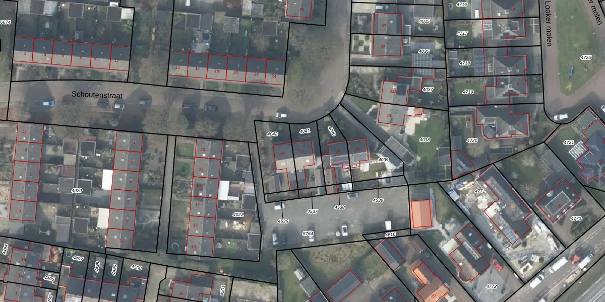Gebruik de zoekbalk of klik op een perceel voor informatie over de adressen binnen dit perceel.