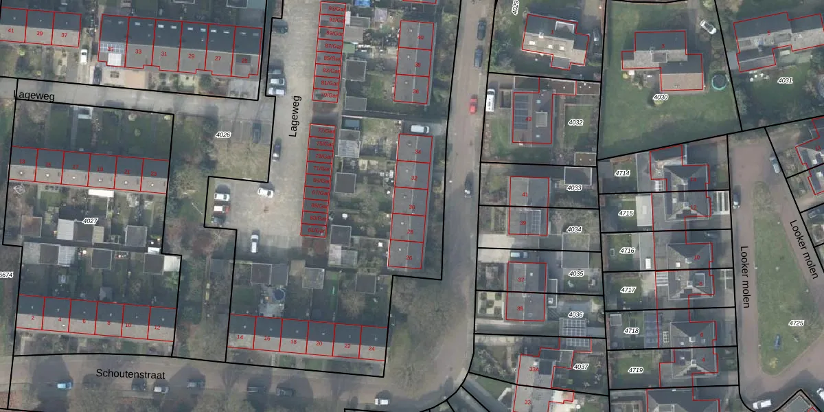 Het perceel waarop Schoutenstraat 30 staat heeft een oppervlakte van 8980 m². Dit is een zeer groot perceel. De perceeloppervlakte wordt geregistreerd door het Kadaster. Gedetailleerde informatie over de maten van dit perceel kunt u vinden in het rapport Kadastrale kaart met maatvoering van Schoutenstraat 30.