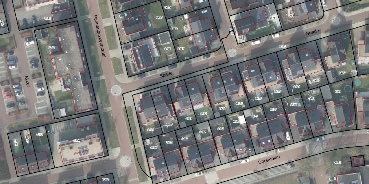Het perceel waarop Spade 5 staat heeft een oppervlakte van 245 m². Dit is een middelgroot perceel. De perceeloppervlakte wordt geregistreerd door het Kadaster. Gedetailleerde informatie over de maten van dit perceel kunt u vinden in het rapport Kadastrale kaart met maatvoering van Spade 5.