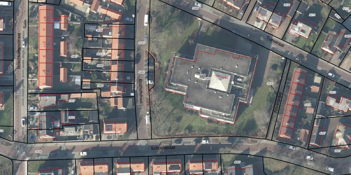 Het perceel waarop Tuinstraat 15-104 staat heeft een oppervlakte van 4625 m². Dit is een zeer groot perceel. De perceeloppervlakte wordt geregistreerd door het Kadaster. Gedetailleerde informatie over de maten van dit perceel kunt u vinden in het rapport Kadastrale kaart met maatvoering van Tuinstraat 15-104.