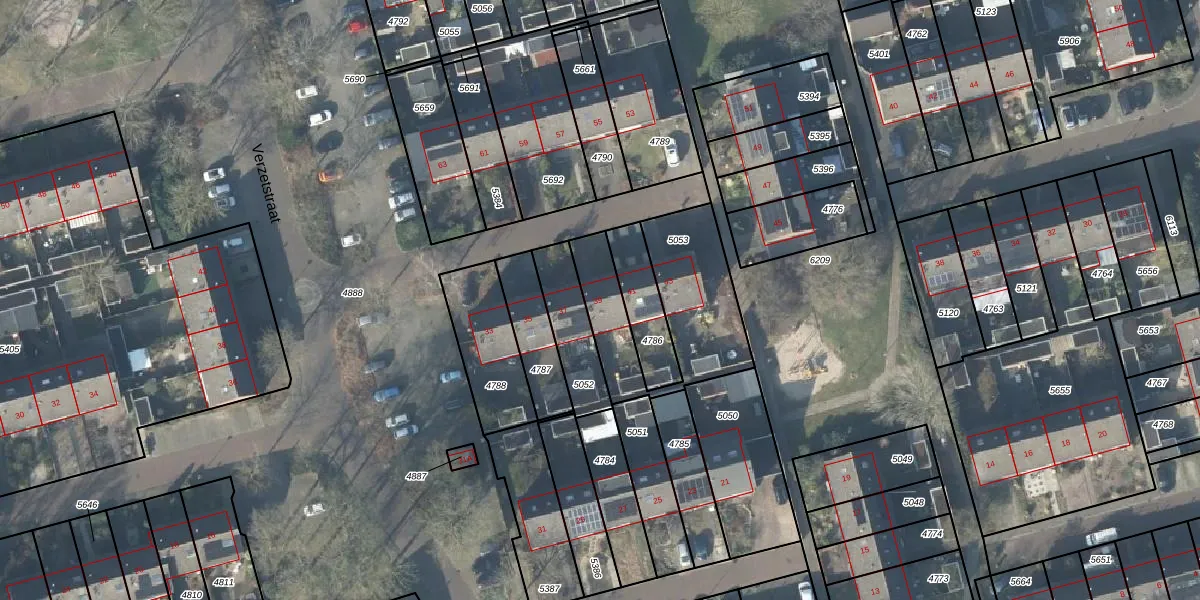 Het perceel waarop Verzetstraat 39 staat heeft een oppervlakte van 533 m². Dit is een groot perceel. De perceeloppervlakte wordt geregistreerd door het Kadaster. Gedetailleerde informatie over de maten van dit perceel kunt u vinden in het rapport Kadastrale kaart met maatvoering van Verzetstraat 39.