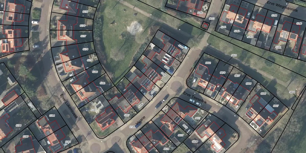 Het perceel waarop Vicarie 12 staat heeft een oppervlakte van 242 m². Dit is een middelgroot perceel. De perceeloppervlakte wordt geregistreerd door het Kadaster. Gedetailleerde informatie over de maten van dit perceel kunt u vinden in het rapport Kadastrale kaart met maatvoering van Vicarie 12.