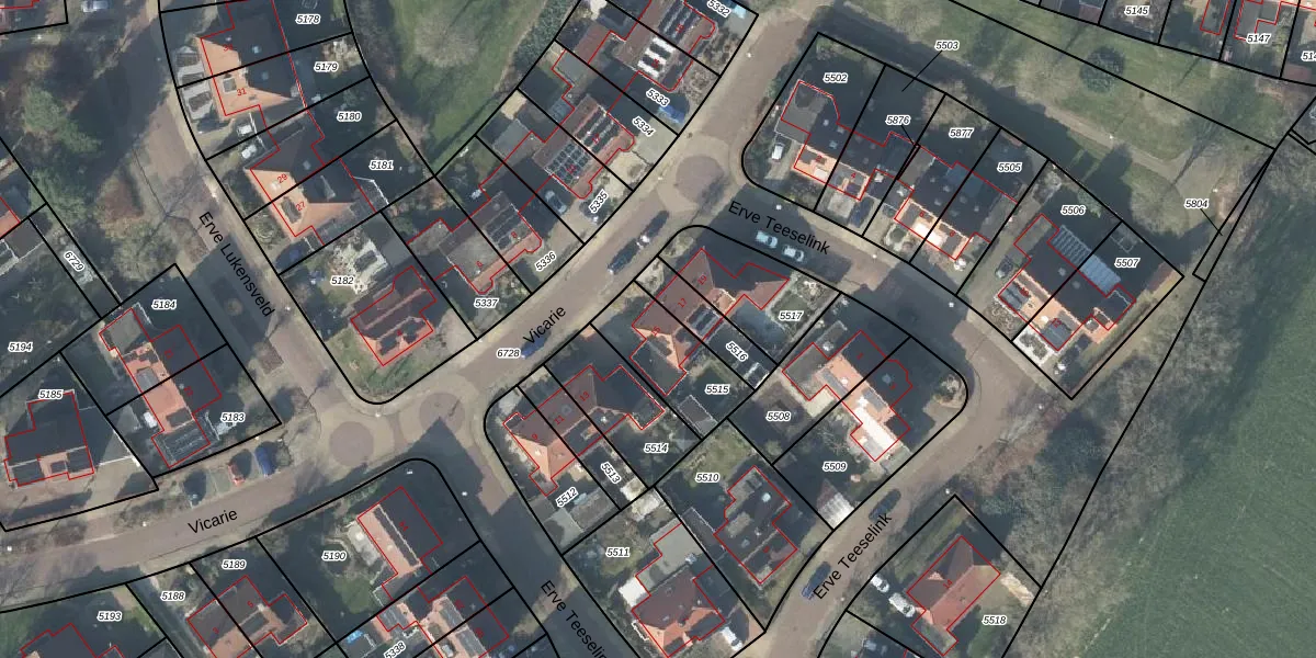 Het perceel waarop Vicarie 15 staat heeft een oppervlakte van 254 m². Dit is een middelgroot perceel. De perceeloppervlakte wordt geregistreerd door het Kadaster. Gedetailleerde informatie over de maten van dit perceel kunt u vinden in het rapport Kadastrale kaart met maatvoering van Vicarie 15.