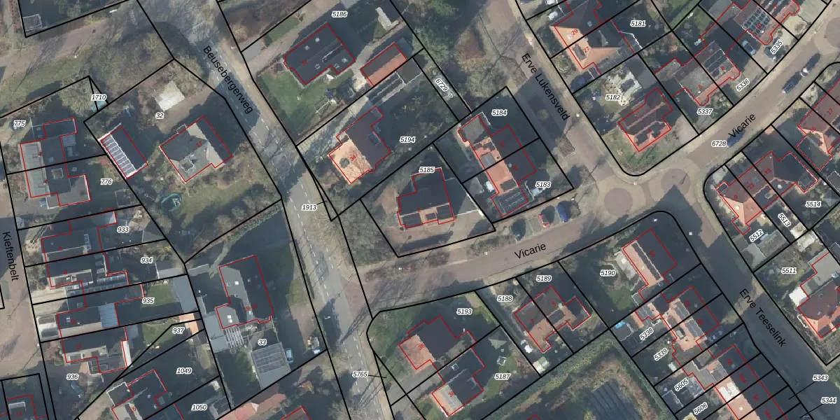 Het perceel waarop Vicarie 2 staat heeft een oppervlakte van 481 m². Dit is een groot perceel. De perceeloppervlakte wordt geregistreerd door het Kadaster. Gedetailleerde informatie over de maten van dit perceel kunt u vinden in het rapport Kadastrale kaart met maatvoering van Vicarie 2.