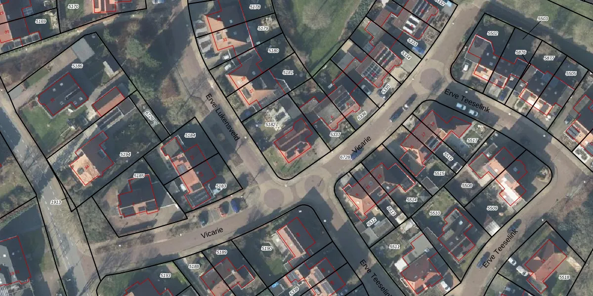 Het perceel waarop Vicarie 4 staat heeft een oppervlakte van 469 m². Dit is een groot perceel. De perceeloppervlakte wordt geregistreerd door het Kadaster. Gedetailleerde informatie over de maten van dit perceel kunt u vinden in het rapport Kadastrale kaart met maatvoering van Vicarie 4.