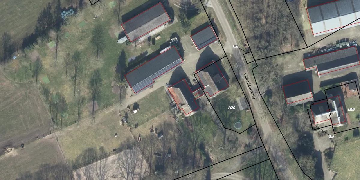 Het perceel waarop Vijfhuizenweg 12 staat heeft een oppervlakte van 10,5 ha. Dit is een zeer groot perceel. De perceeloppervlakte wordt geregistreerd door het Kadaster. Gedetailleerde informatie over de maten van dit perceel kunt u vinden in het rapport Kadastrale kaart met maatvoering van Vijfhuizenweg 12.