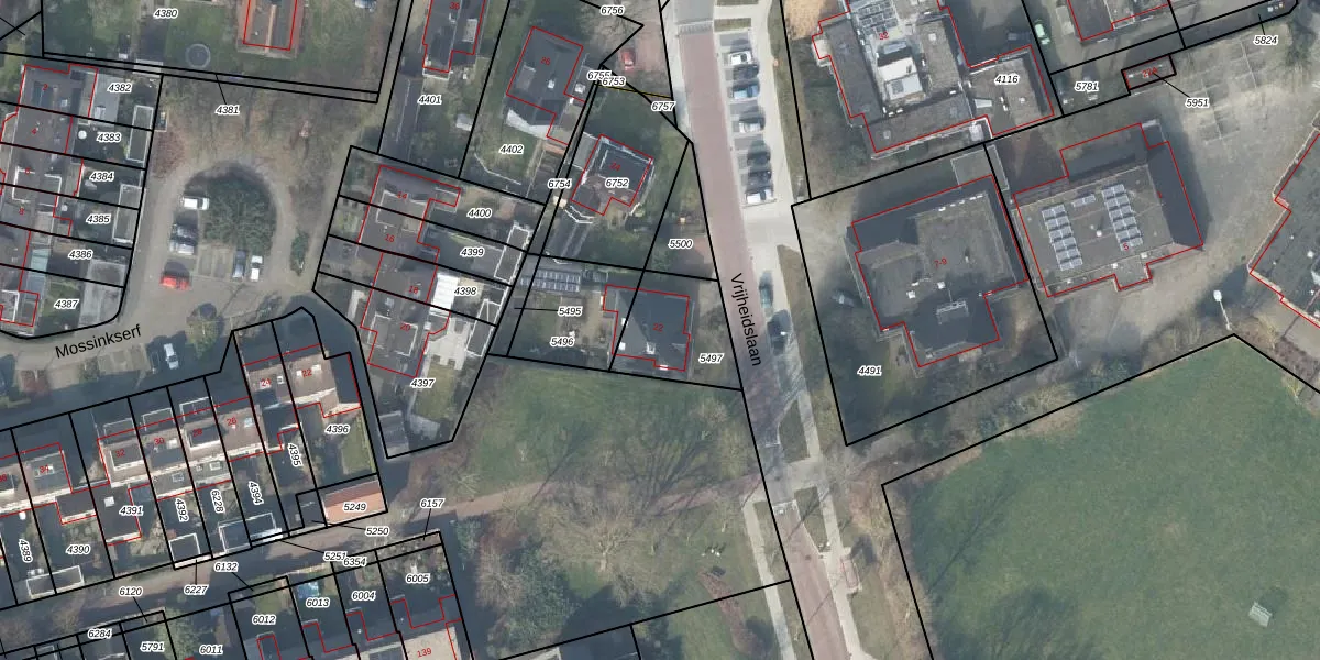 Gebruik de zoekbalk of klik op een perceel voor informatie over de adressen binnen dit perceel.