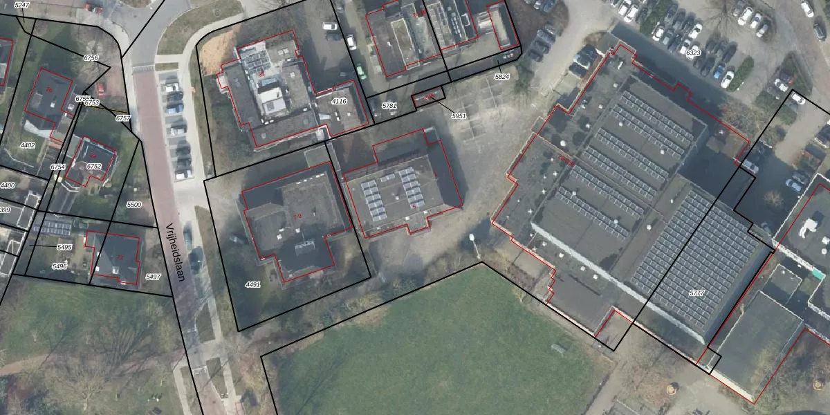 Het perceel waarop Vrijheidslaan 5 staat heeft een oppervlakte van 2,3 ha. Dit is een zeer groot perceel. De perceeloppervlakte wordt geregistreerd door het Kadaster. Gedetailleerde informatie over de maten van dit perceel kunt u vinden in het rapport Kadastrale kaart met maatvoering van Vrijheidslaan 5.