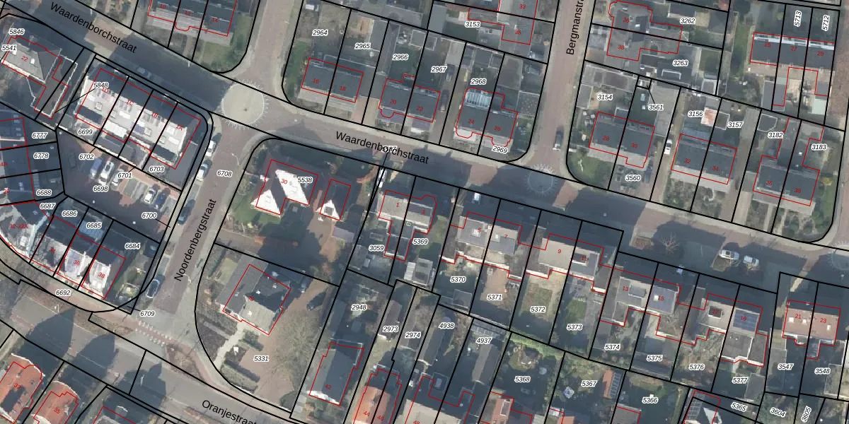Gebruik de zoekbalk of klik op een perceel voor informatie over de adressen binnen dit perceel.