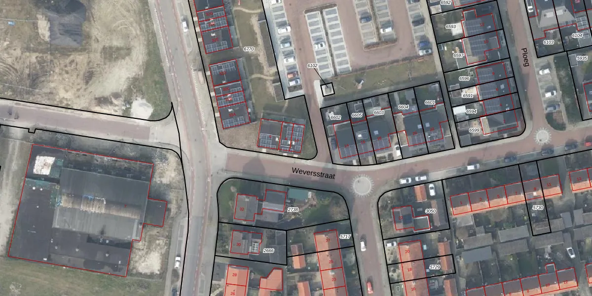 Het perceel waarop Weversstraat 10 staat heeft een oppervlakte van 1955 m². Dit is een zeer groot perceel. De perceeloppervlakte wordt geregistreerd door het Kadaster. Gedetailleerde informatie over de maten van dit perceel kunt u vinden in het rapport Kadastrale kaart met maatvoering van Weversstraat 10.