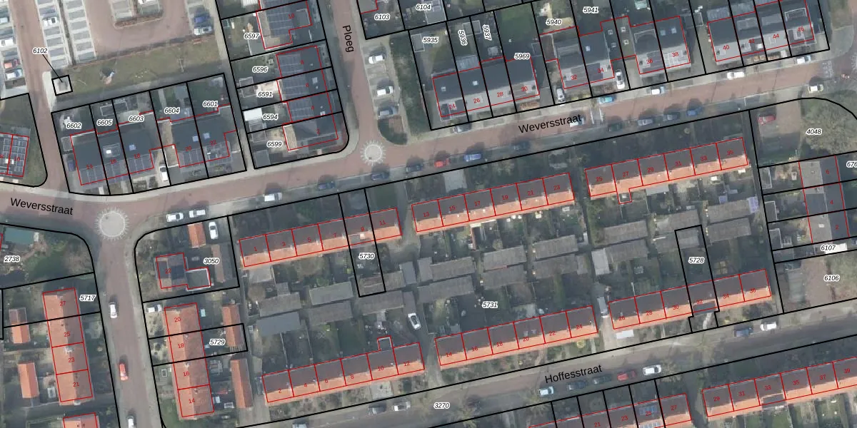 Het perceel waarop Weversstraat 13 staat heeft een oppervlakte van 6370 m². Dit is een zeer groot perceel. De perceeloppervlakte wordt geregistreerd door het Kadaster. Gedetailleerde informatie over de maten van dit perceel kunt u vinden in het rapport Kadastrale kaart met maatvoering van Weversstraat 13.