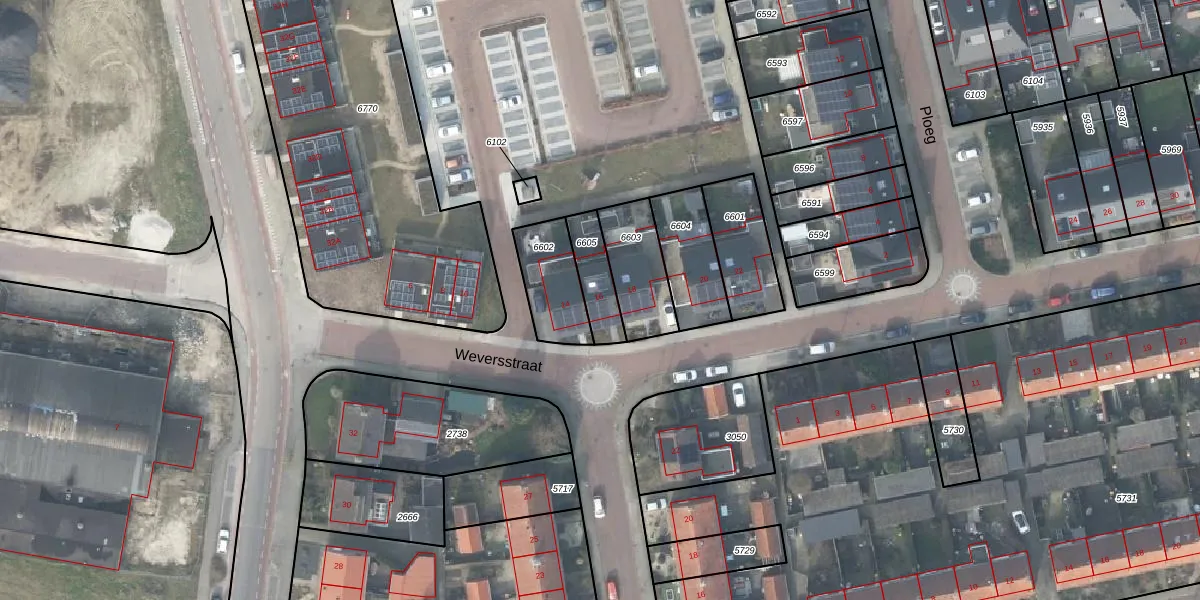 Gebruik de zoekbalk of klik op een perceel voor informatie over de adressen binnen dit perceel.
