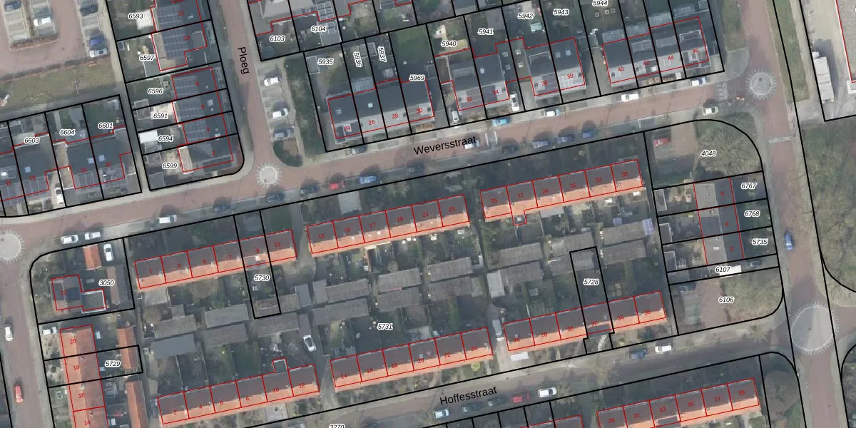 Het perceel waarop Weversstraat 21 staat heeft een oppervlakte van 6370 m². Dit is een zeer groot perceel. De perceeloppervlakte wordt geregistreerd door het Kadaster. Gedetailleerde informatie over de maten van dit perceel kunt u vinden in het rapport Kadastrale kaart met maatvoering van Weversstraat 21.