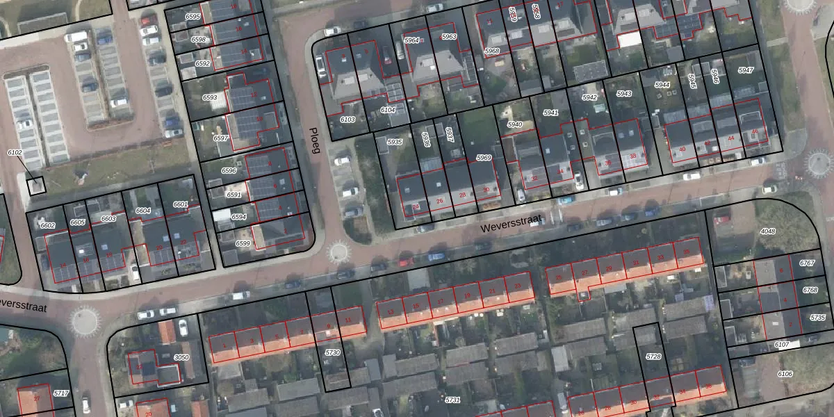 Gebruik de zoekbalk of klik op een perceel voor informatie over de adressen binnen dit perceel.