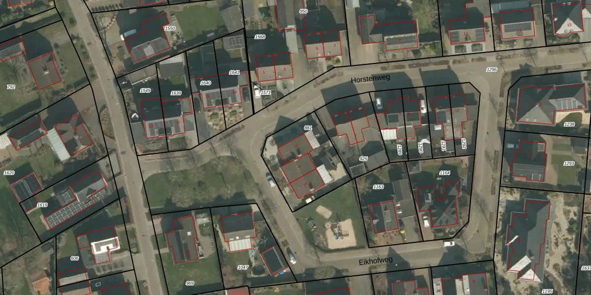 Eikhofweg 1 is gelegen op kadastraal perceel VLB00G881. Deze kadastrale aanduiding is uniek en wordt gebruikt door het Kadaster om eigendomsrechten en andere zakelijke rechten vast te leggen. Het perceel maakt onderdeel uit van de kadastrale gemeente Vierlingsbeek.