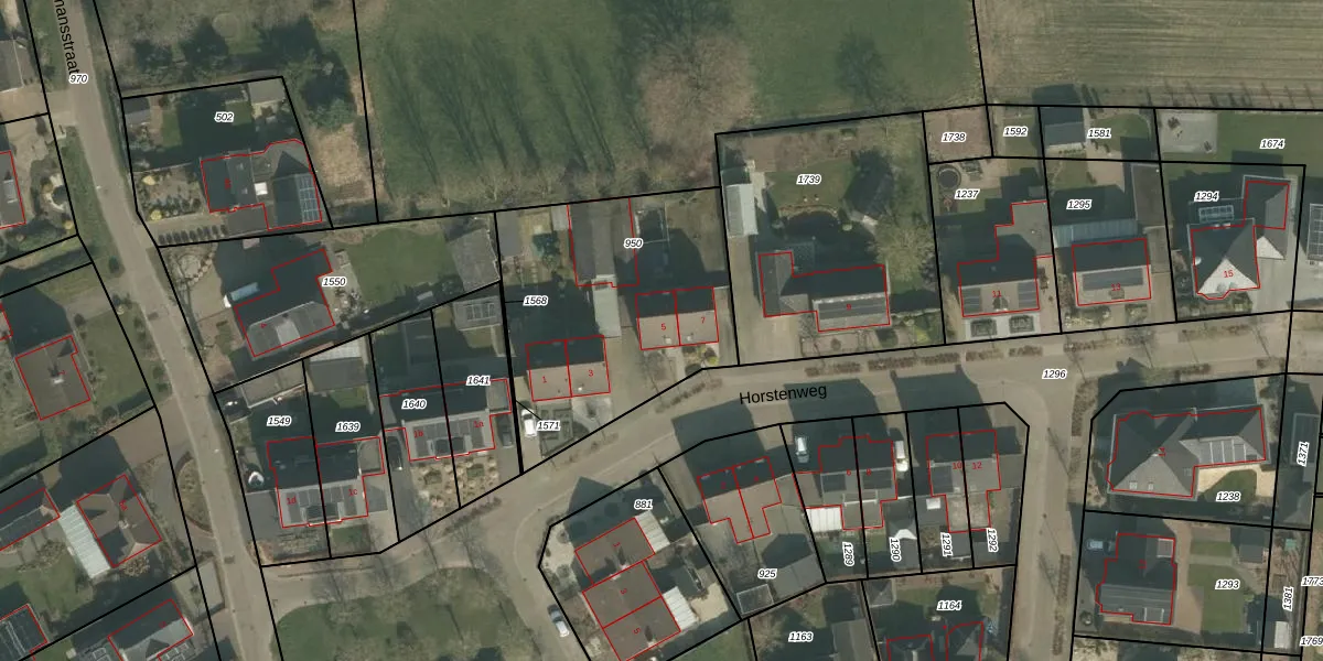 Horstenweg 5 is gelegen op kadastraal perceel VLB00G950. Deze kadastrale aanduiding is uniek en wordt gebruikt door het Kadaster om eigendomsrechten en andere zakelijke rechten vast te leggen. Het perceel maakt onderdeel uit van de kadastrale gemeente Vierlingsbeek.