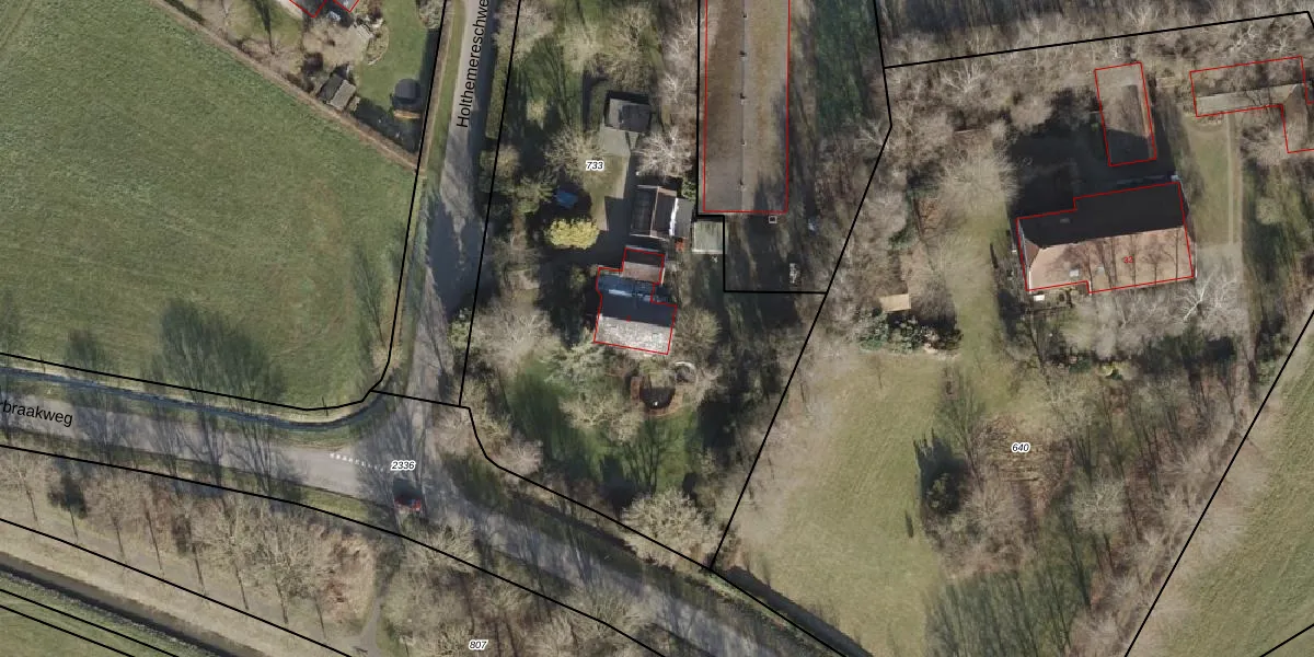 Holthemereschweg 1 is gelegen op kadastraal perceel GBG00L733. Deze kadastrale aanduiding is uniek en wordt gebruikt door het Kadaster om eigendomsrechten en andere zakelijke rechten vast te leggen. Het perceel maakt onderdeel uit van de kadastrale gemeente Gramsbergen.