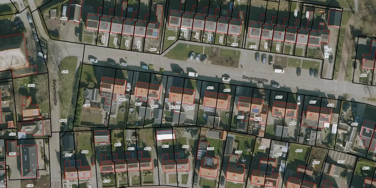 Gebruik de zoekbalk of klik op een perceel voor informatie over de adressen binnen dit perceel.