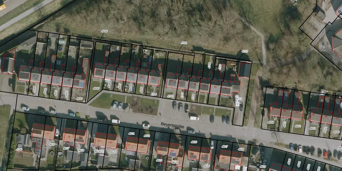 Gebruik de zoekbalk of klik op een perceel voor informatie over de adressen binnen dit perceel.