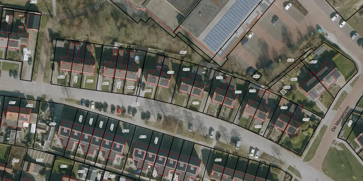Gebruik de zoekbalk of klik op een perceel voor informatie over de adressen binnen dit perceel.