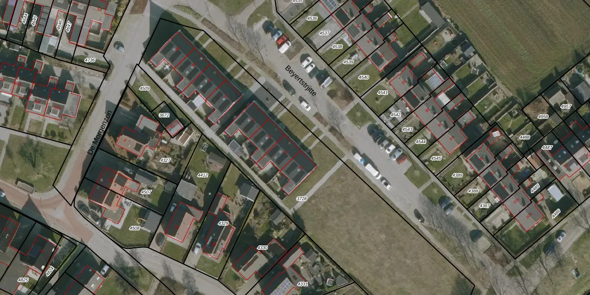 Het perceel waarop Beyertstrjitte 78 staat heeft een oppervlakte van 3770 m². Dit is een zeer groot perceel. De perceeloppervlakte wordt geregistreerd door het Kadaster. Gedetailleerde informatie over de maten van dit perceel kunt u vinden in het rapport Kadastrale kaart met maatvoering van Beyertstrjitte 78.