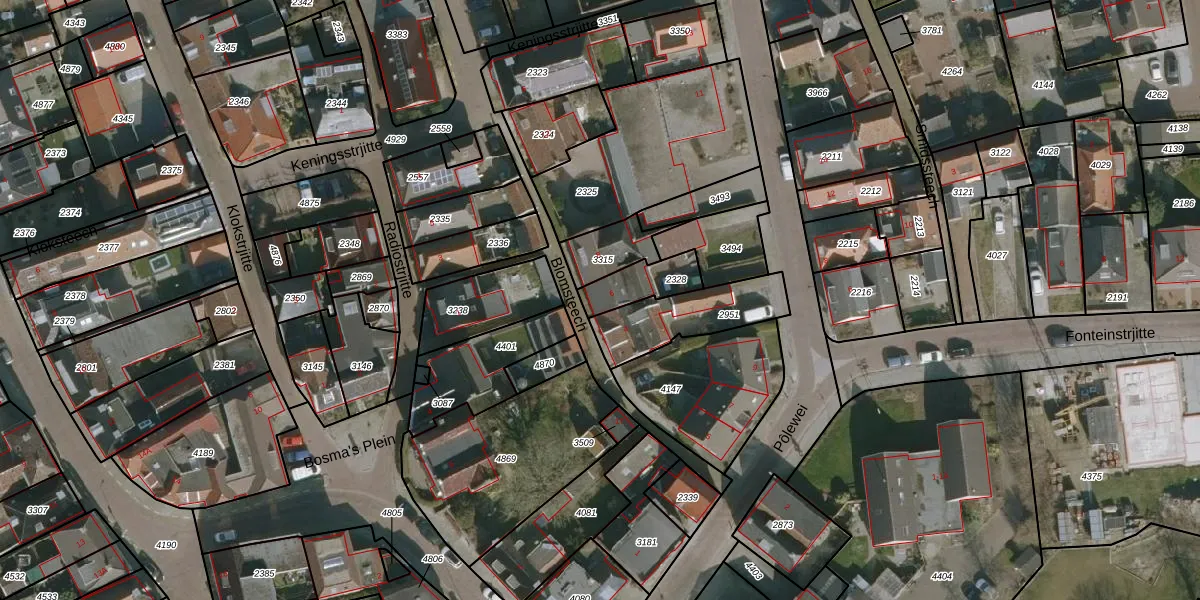 Gebruik de zoekbalk of klik op een perceel voor informatie over de adressen binnen dit perceel.