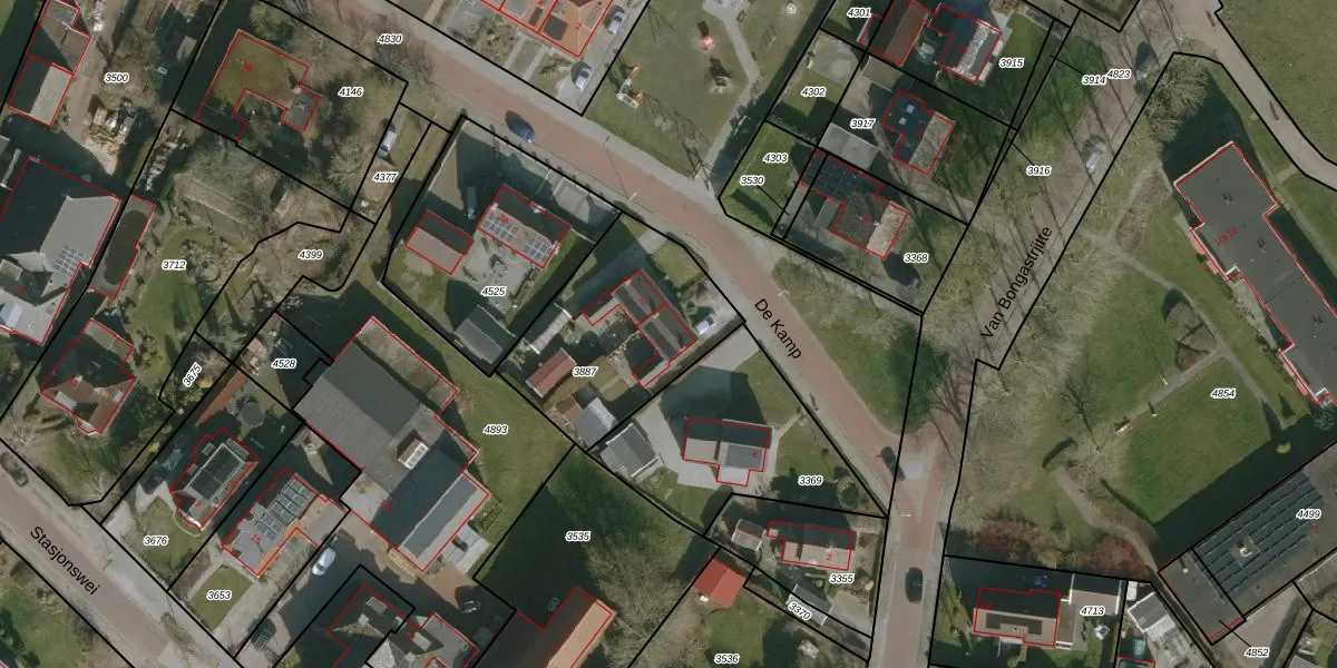 Het perceel waarop De Kamp 1 staat heeft een oppervlakte van 680 m². Dit is een groot perceel. De perceeloppervlakte wordt geregistreerd door het Kadaster. Gedetailleerde informatie over de maten van dit perceel kunt u vinden in het rapport Kadastrale kaart met maatvoering van De Kamp 1.