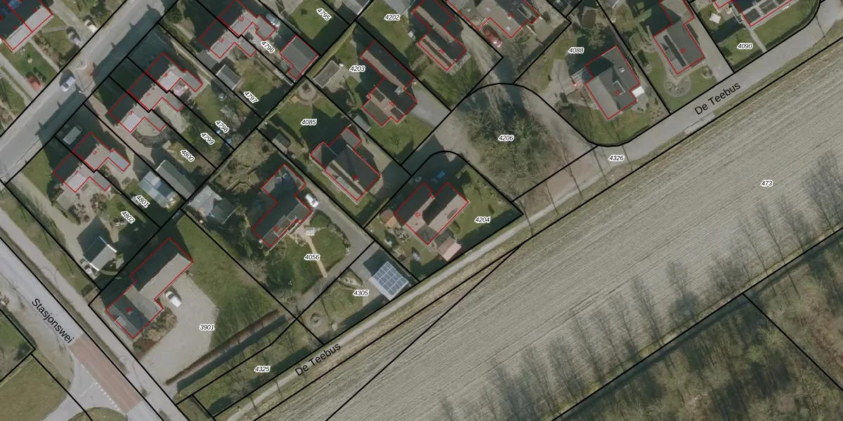 De Teebus 32 is gelegen op kadastraal perceel HWD00A4204. Deze kadastrale aanduiding is uniek en wordt gebruikt door het Kadaster om eigendomsrechten en andere zakelijke rechten vast te leggen. Het perceel maakt onderdeel uit van de kadastrale gemeente Holwerd.
